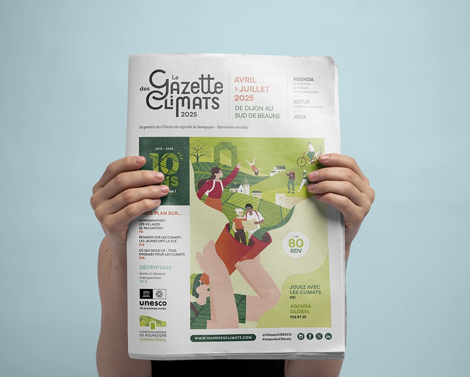 C’est aussi le résultat d’une collaboration active et continue avec les équipes de l’Association des Climats du vignoble de Bourgogne – Patrimoine mondial pour le conseil éditorial, la rédaction, le design et la réalisation graphique.